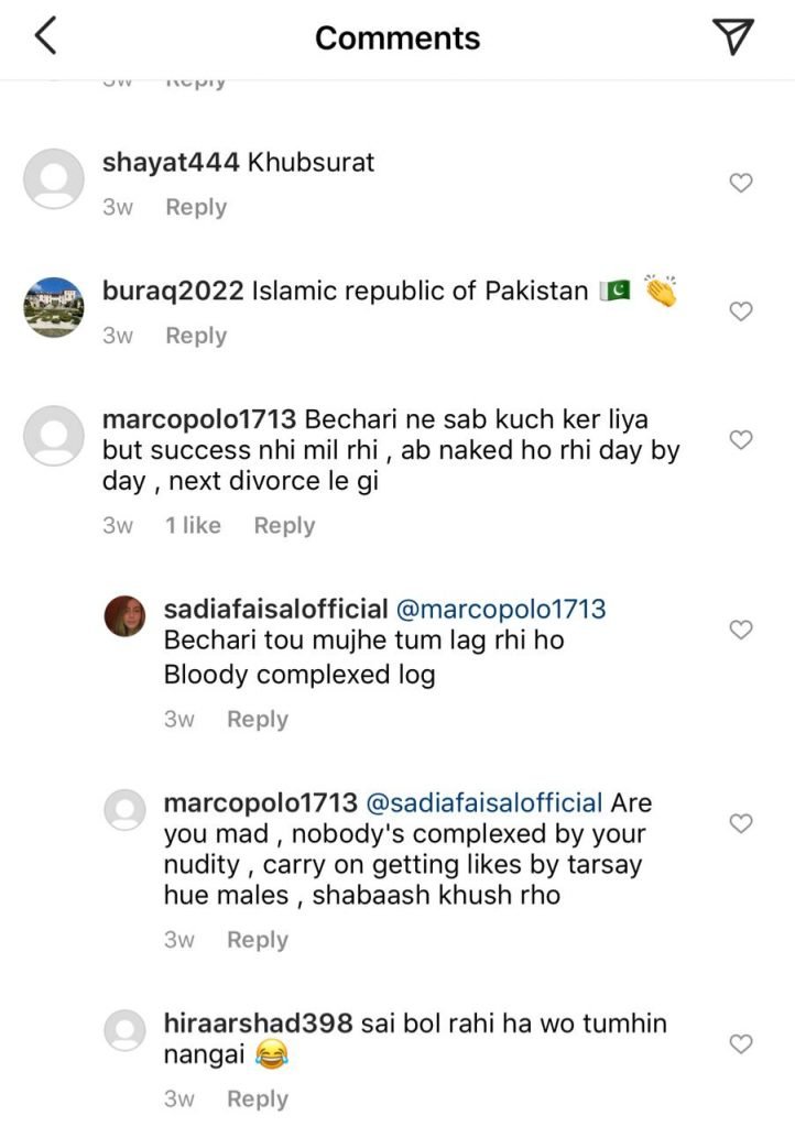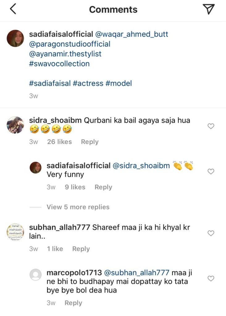 Zid fame actress Sadia Faisal recently hit back at trolls in the comment section of her Instagram posts as a few netizens criticised her sense of dressing and fashion. Sadia is the daughter of veteran Pakistani actress Saba Faisal who also reverted back at trolls recently post his son’s separation with his wife.