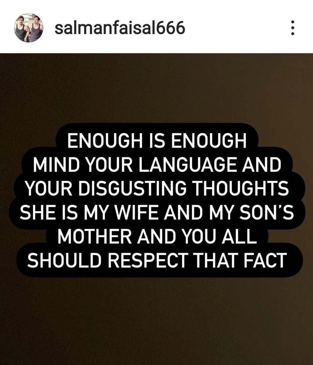Taking to his Instagram handle, Salman wrote: “Enough is enough mind your language and your disgusting thoughts she is my wife and my son’s mother and you all should respect that fact.”