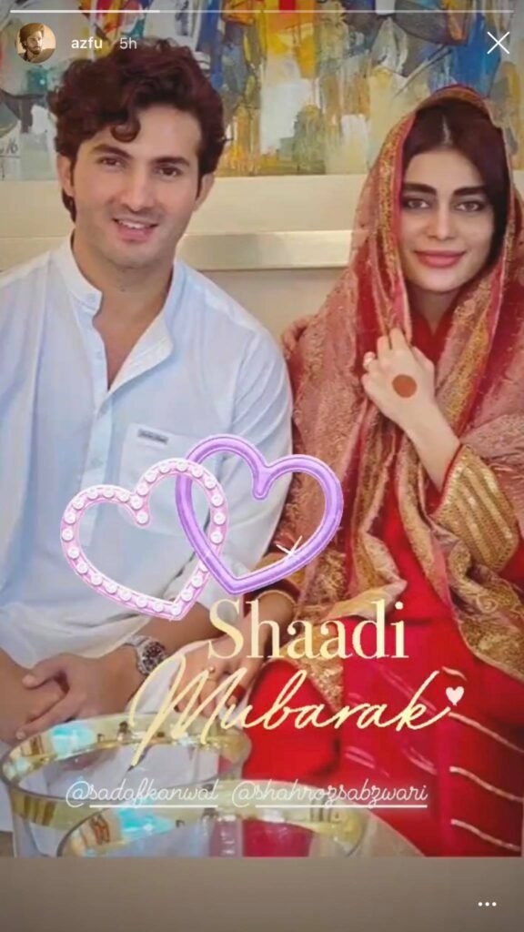 Meanwhile, Sadaf’s friends took to social media to congratulate the couple.