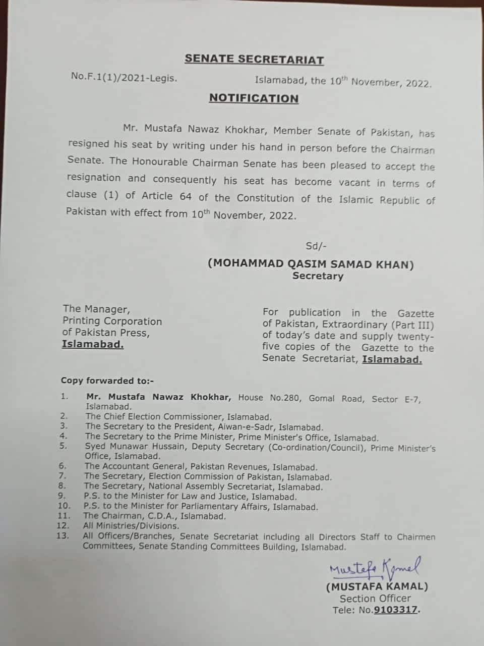Prior to this, Swati had alleged that the video was recorded when he and his wife had visited Quetta where he stayed at the Supreme Court Judicial Lodges. According to Swati, Chairman Sanjrani had arranged his stay. However, the SC issued a clarification stating that Senator Azam Swati “Never used/stayed in Supreme Court Judges Rest House at Quetta”, adding that according to the Balochistan Special Branch, Swati stayed at the Balochistan Judicial Academy (Judicial Complex Quetta), which is not under the SC’s control.