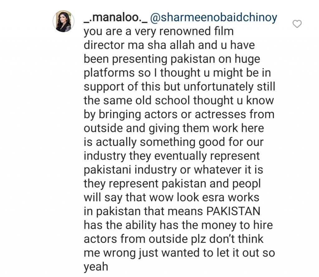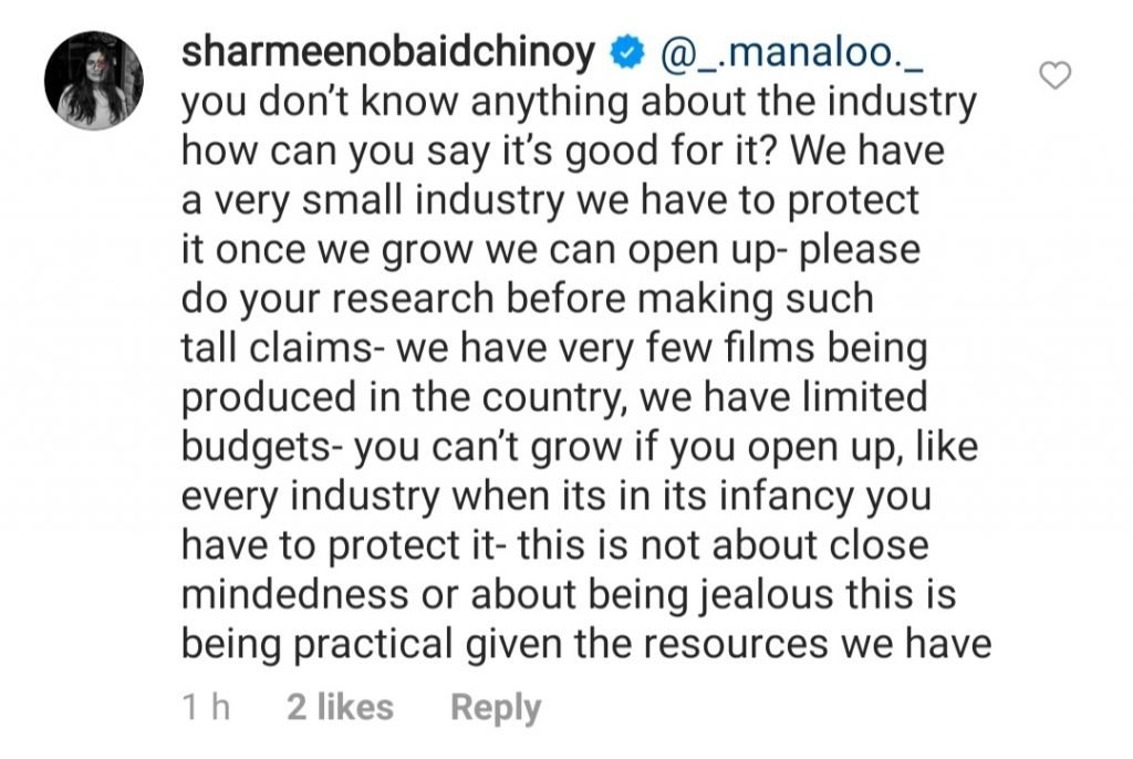 “When you have budgets and work for Pakistani actors, then begin to import foreign ones,” continued the filmmaker. “Bollywood and Hollywood can afford to do that – we cannot.”