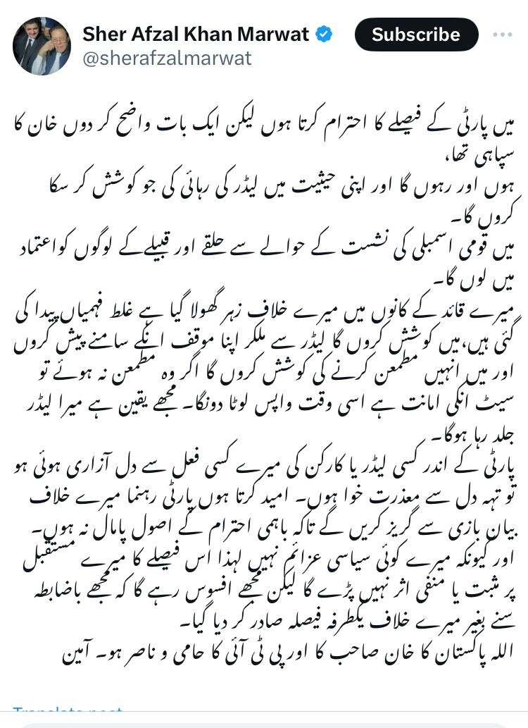 Meanwhile, Marwat has accepted the party notification on X, saying, “I respect the party’s decision, but let me make one thing clear: I was Khan’s soldier.”