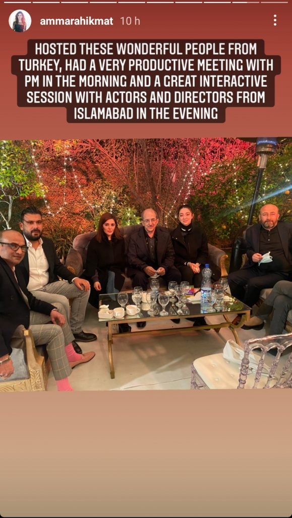 Earlier in the day, the delegation met with Adnan and Humayun, with whom Tekdin Films and TRT production have signed a deal with as partners. Adnan had earlier shared that the partnership will infuse freshness in Pakistani content. Minister for Information and Broadcasting Shibli Faraz and Chairman Parliamentary Committee on Kashmir Shehryar Afridi were also part of the meeting.