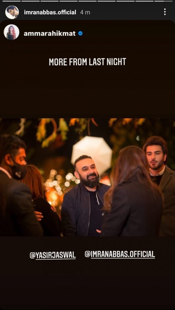 The dinner, which was hosted by The Legend of Maula Jutt producer Ammara Hikmat saw several Pakistani celebrities including Imran Abbas, Faisal Qureshi, Ahmad Ali Akhbar, Yasir Jaswal, Adnan and Humayun in attendance.