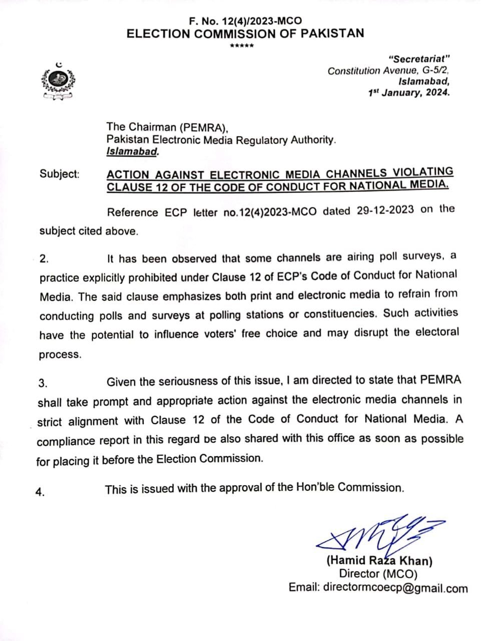 PTI government, on January 24, 2020, appointed Sikandar Sultan Raja, a retired bureaucrat, as Chief Election Commissioner for a five-year term.