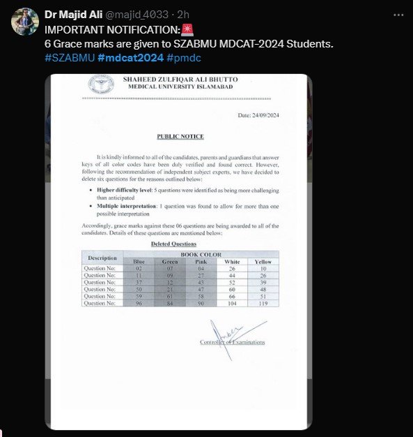 As for the recent update, the students online are claiming that SZABMU has decided to award six grace marks to the students on the issue of wrong answer keys.