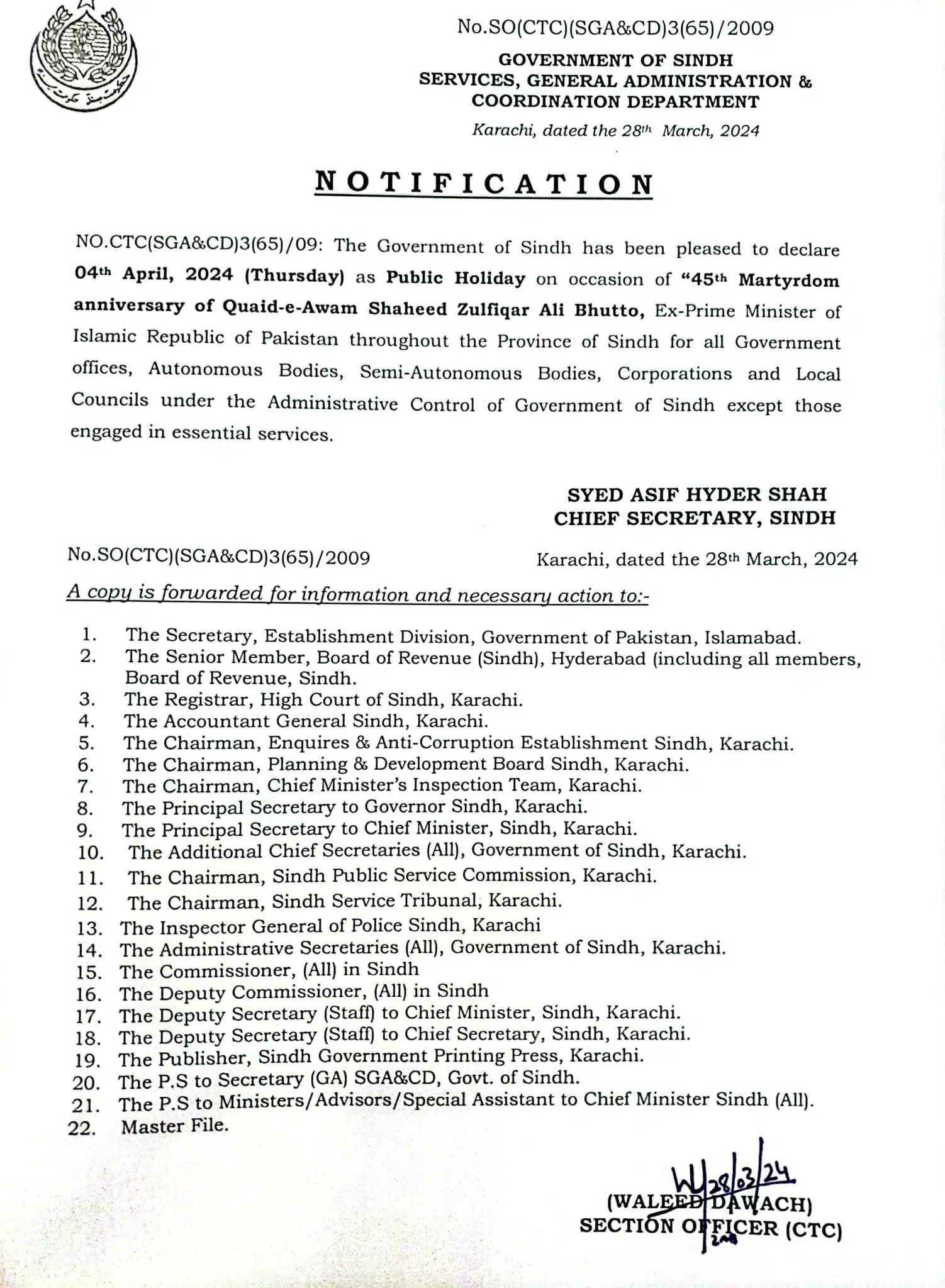 Saeed Ghani, who held different portfolios in previous tenures including information, was once again allotted the department of local government, in addition to the public health engineering and rural development department.