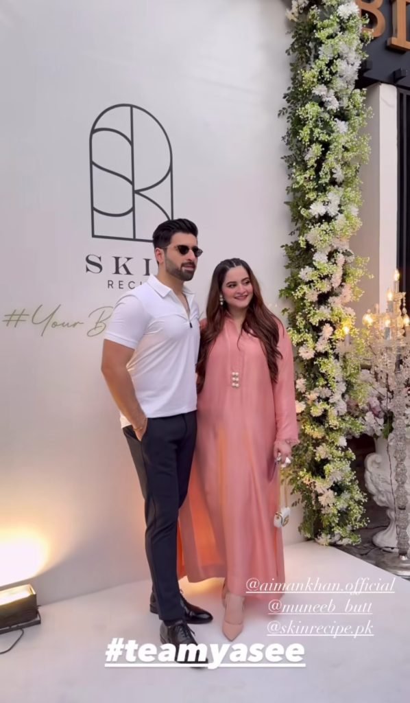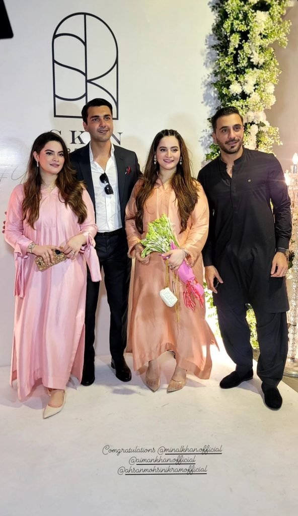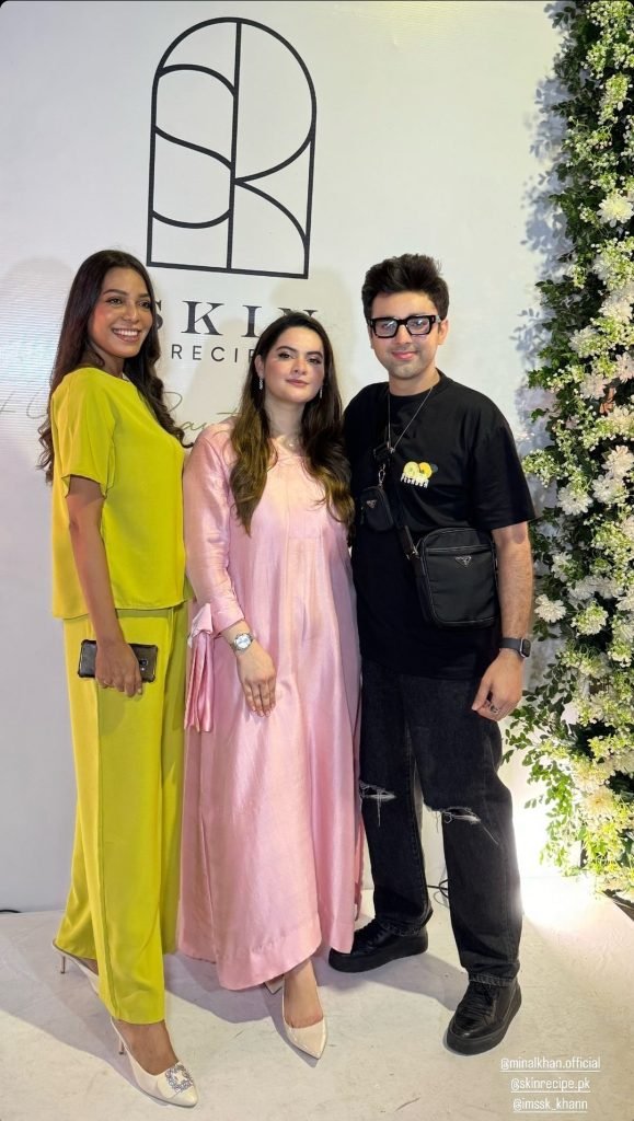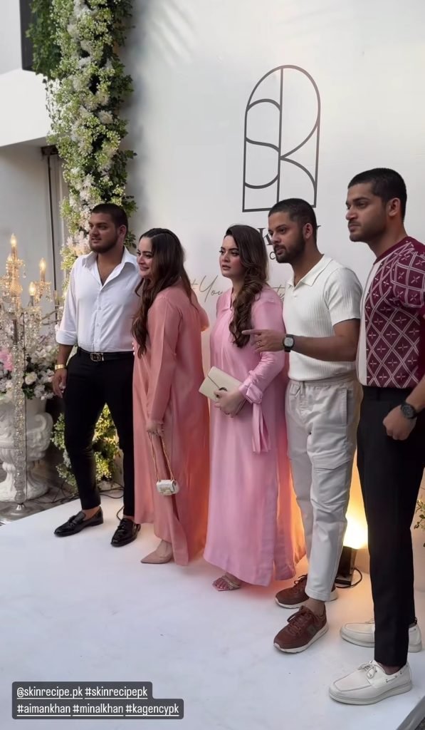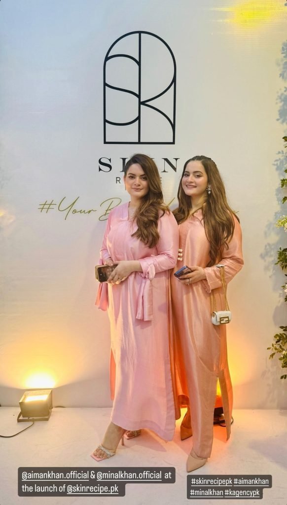 Aiman Khan and Minal Khan, beloved Pakistani celebrities with massive social media followings, have stepped into the world of skincare with their new brand, Skin Recipe. The launch event, held in Karachi, attracted a host of social media influencers, celebrities, and the actresses’ family members. The buzz surrounding the Skin Recipe launch is spreading like wildfire on social media, with pictures and videos from the event circulating on Instagram.