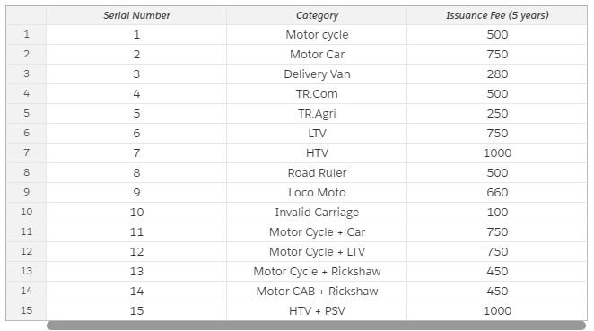 Below attached is the fee structure for different vehicle categories.