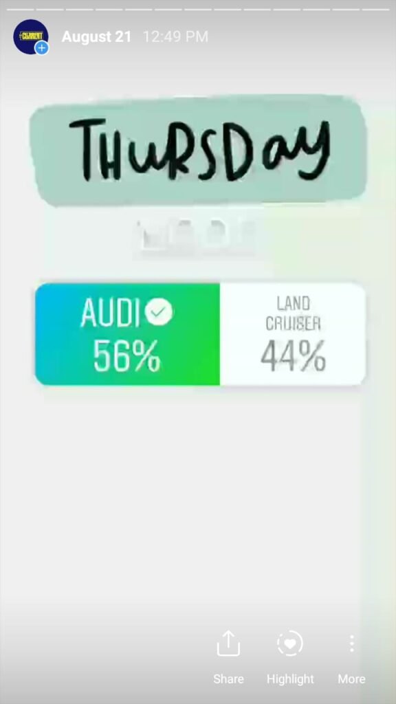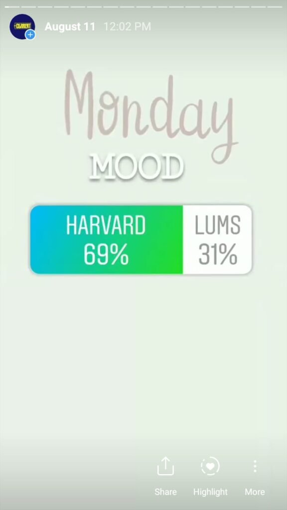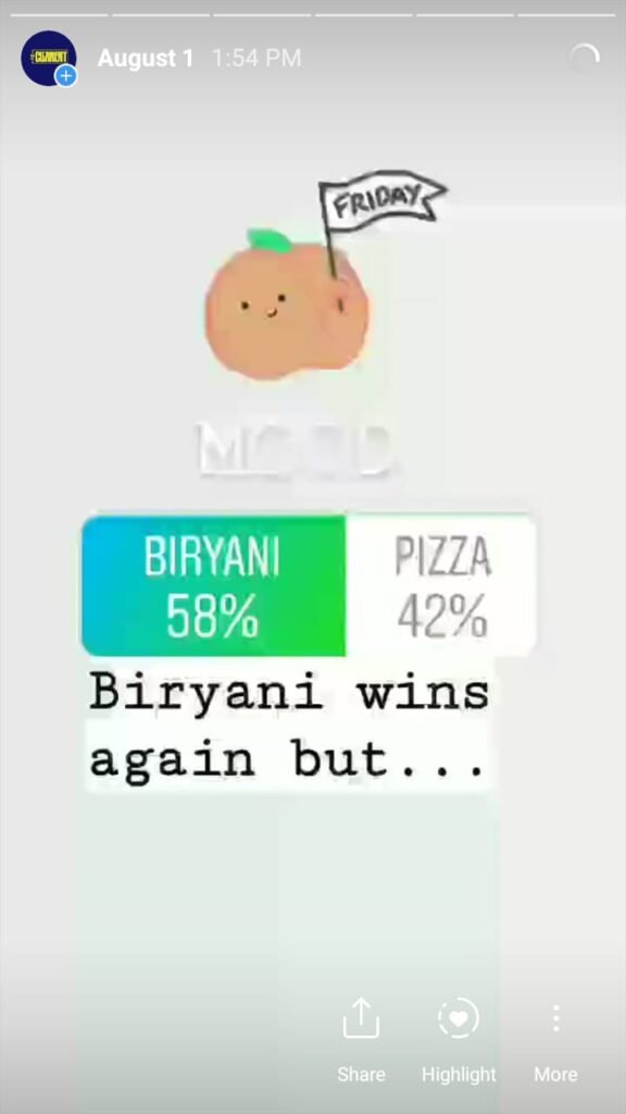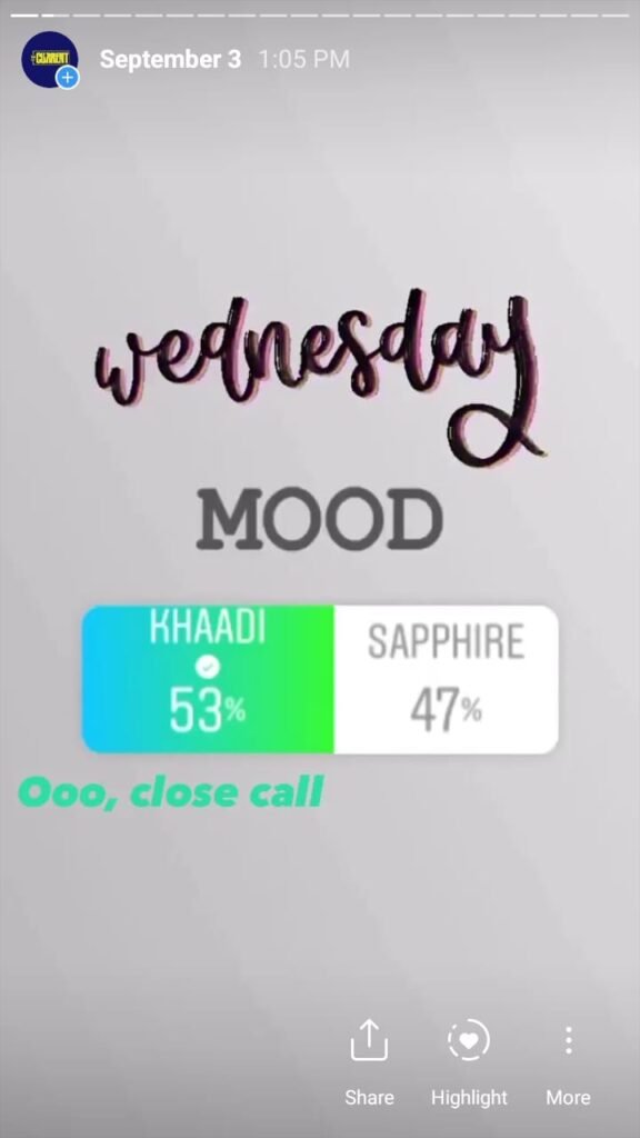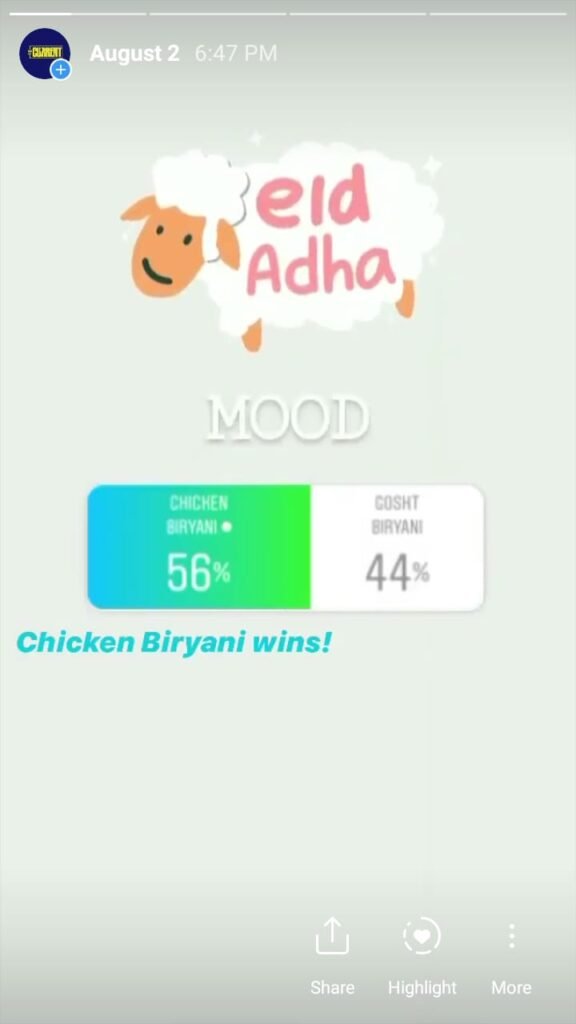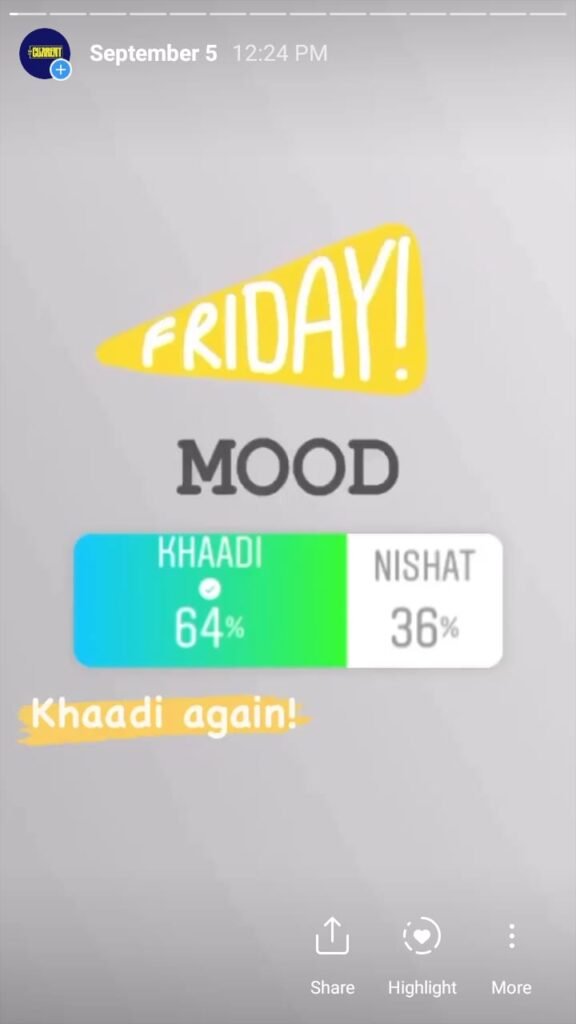 The Current starts its day with a morning mood to engage followers and find out what they are interested in. This is done via a ‘this or that’ poll and the winner had to compete the same category the next day. It is done over a week’s time and we found out a lot about our followers – and Pakistanis – based on what they vote for.