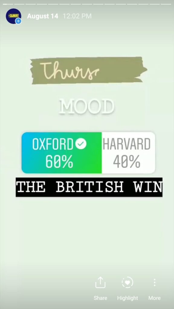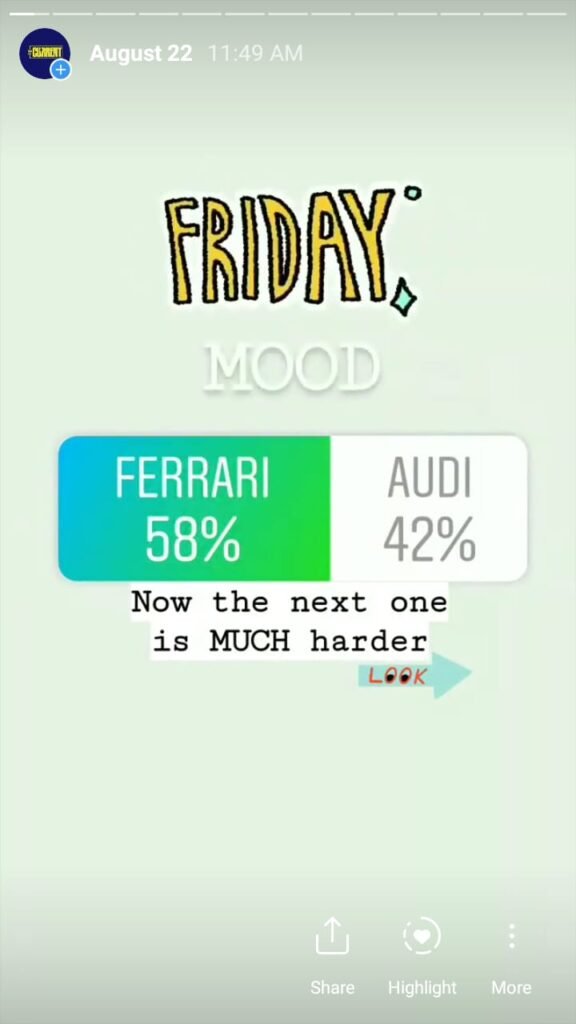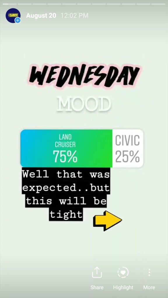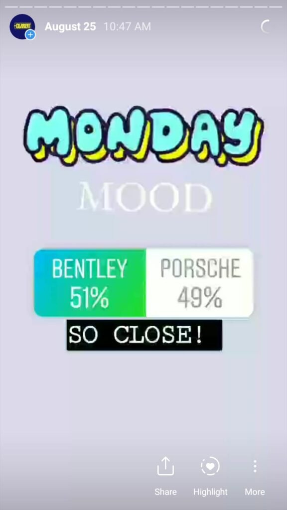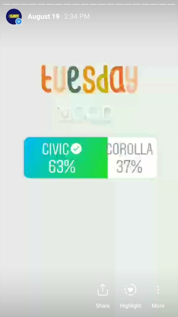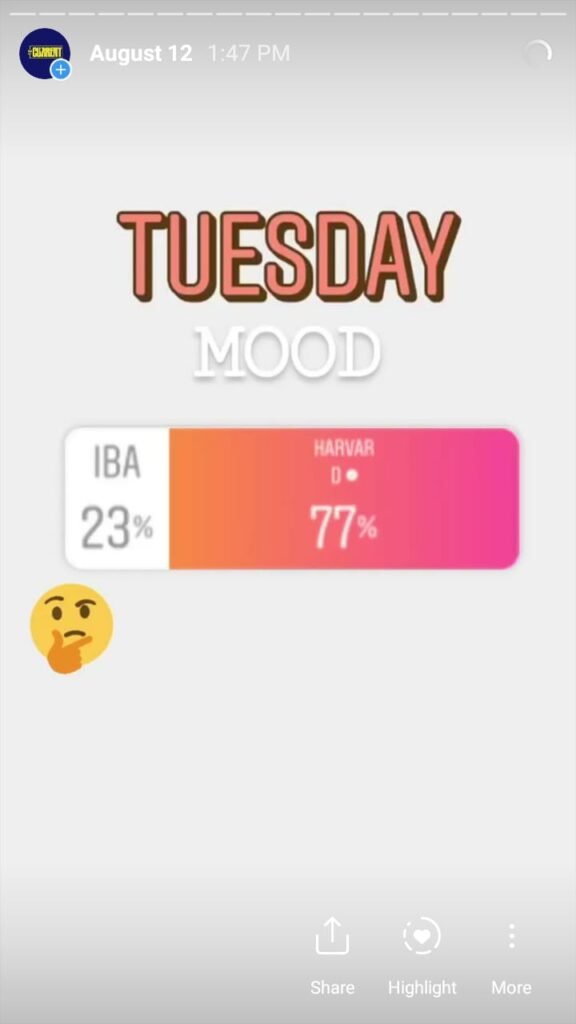 The Current starts its day with a morning mood to engage followers and find out what they are interested in. This is done via a ‘this or that’ poll and the winner had to compete the same category the next day. It is done over a week’s time and we found out a lot about our followers – and Pakistanis – based on what they vote for.