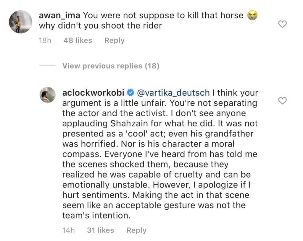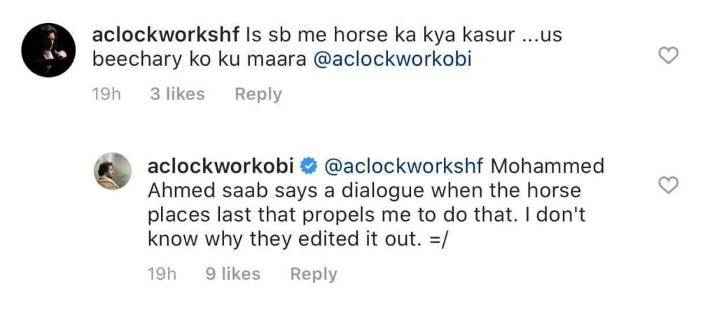 Those invested in the drama were naturally upset with the way things progressed and the scene in which Shahzain shot the horse triggered many. No disclaimer was given before the scene. However, the gun was blurred out.