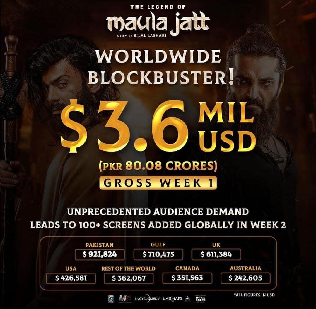 The Legend of Maula Jatt has opened in 25 markets worldwide, including Norway, Germany, Netherlands, Spain, and South East Asia, and overall it has grossed $2.3 million globally.