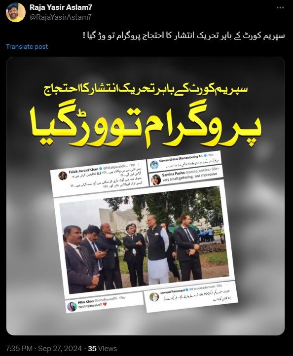 Advocate Salman Akram Raja, while addressing the protest, said that Pakistan Tehreek-e-Insaf (PTI) came out to protest for the rule of law and constitution.