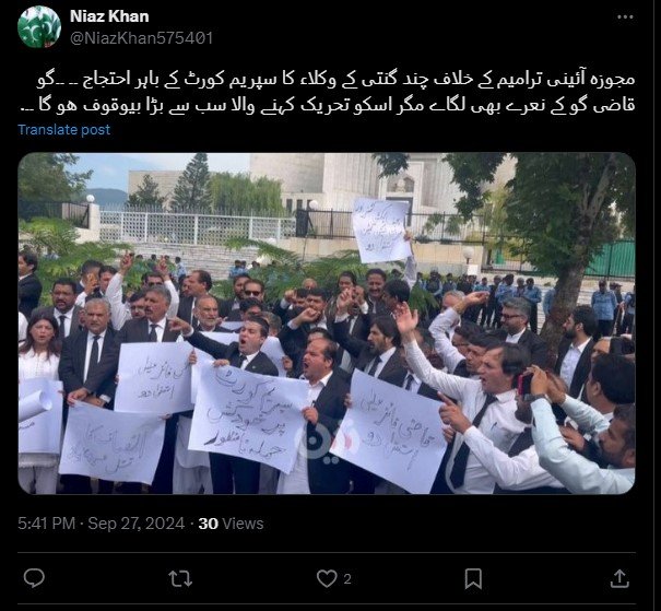 A small number of lawyers protested outside the Supreme Court (SC) of Pakistan yesterday, chanting, “Go donut go,” referring to the Chief Justice of Pakistan (CJP) Qazi Faez Isa.