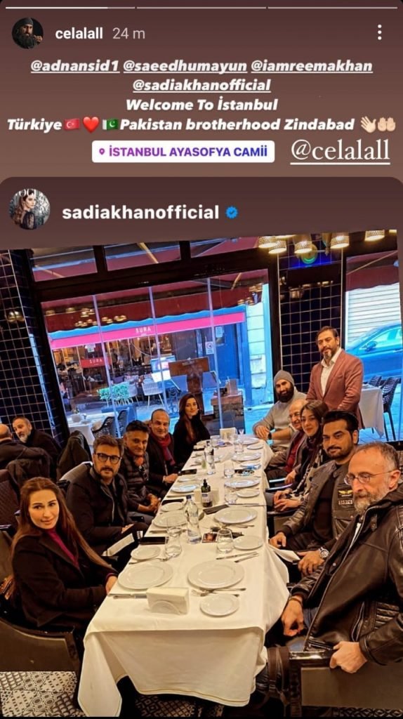 Sharing a picture of Pakistani celebrities enjoying their meals together in his Instagram stories, Celal wrote: “Adnan, Humayun, Reema and Sadia welcome to Istanbul. Turkey-Pakistan brotherhood zindabad.”