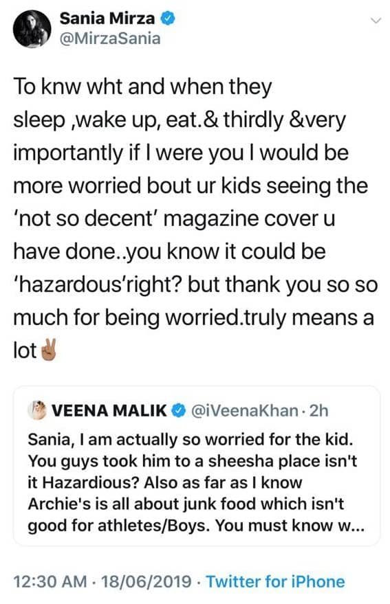 Well well, this is one phadda we didn’t see coming. After endlessly trolling Maryam Nawaz Sharif, Veena Malik turned her attention to bhabhi Sania Mirza. She first called Sania out for the way she is upbringing her son before subtly blaming her for Pakistan’s humiliating defeat against India in the ICC World Cup 2019.
