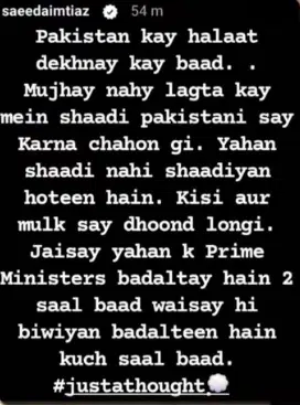 Appearing as a guest on Ahmed Ali Butt’s show ‘Mind Na Karna’, Mariyam was asked about having more than one spouse, as cricketer Shoaib Malik’s marriage came up in the discussion.