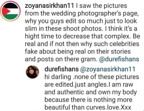 The Pardes star stated that she hasn’t edited her pictures to look a certain way, it’s more about camera angles. She added that nothing is more beautiful than curves and she loves her body.