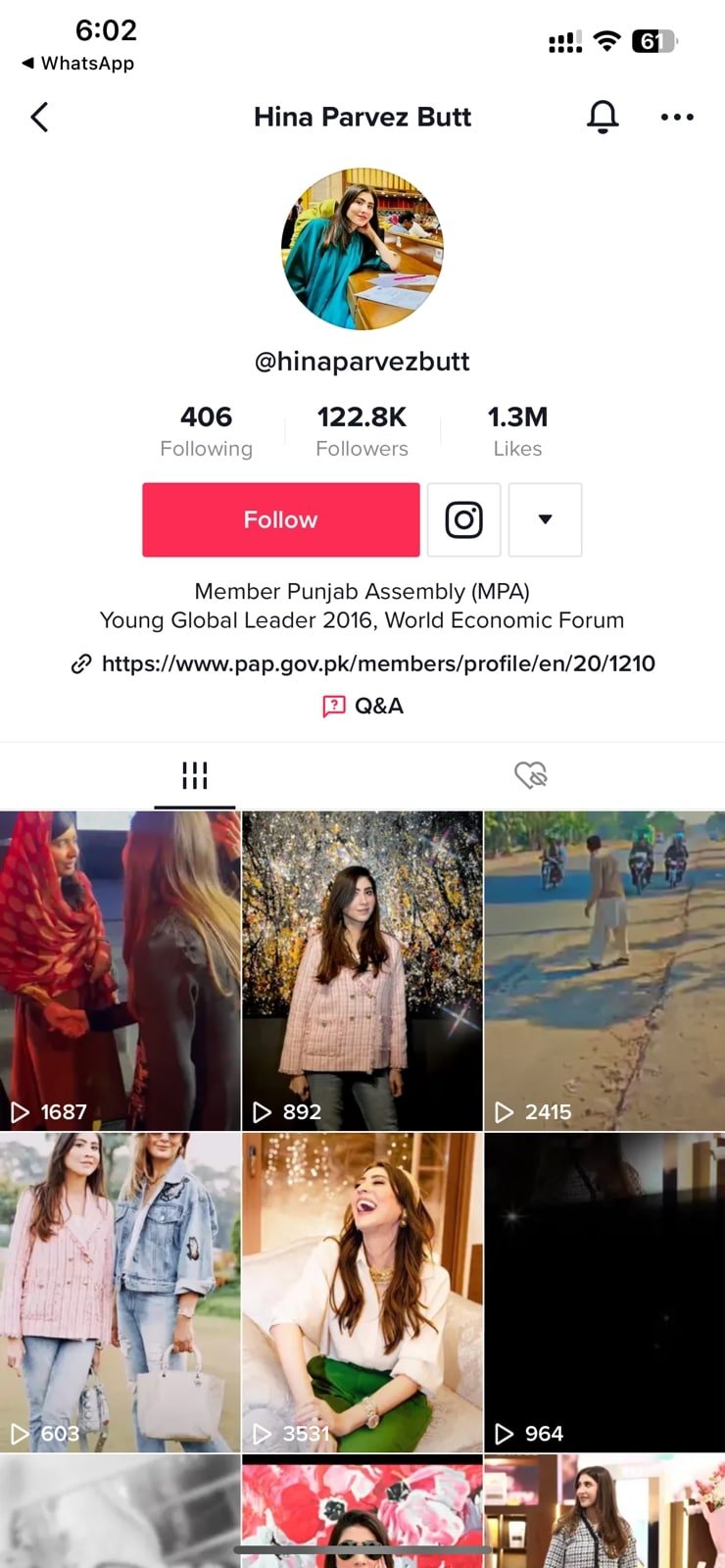 Pakistan Muslim League-Nawaz’s (PML-N) Member of the Provincial Assembly (MPA) Hina Parvez Butt has a following of 120,000 plus people. Her account handle is @hinaparvezbutt.