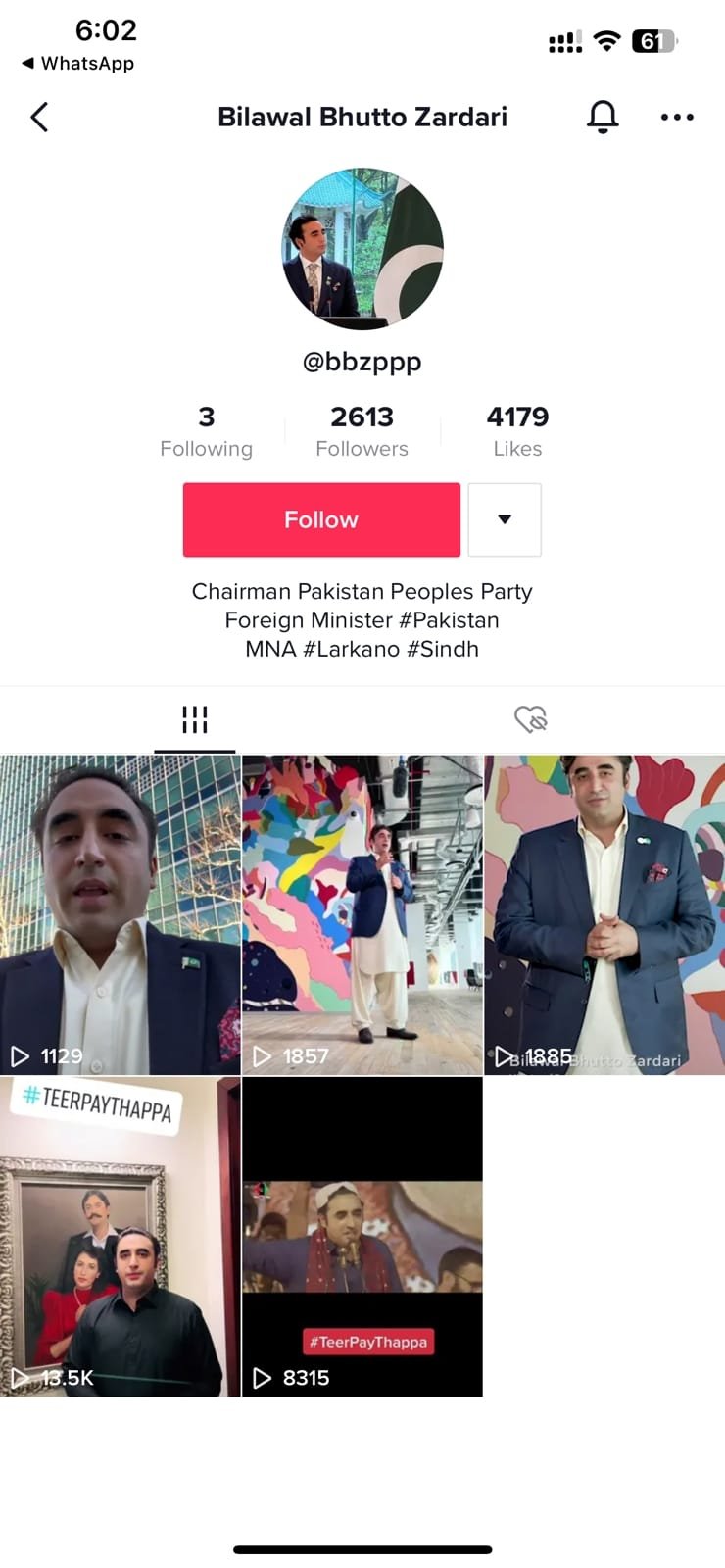 Foreign Minister (FM) Bilawal Bhutto-Zardari has recently joined TikTok and managed to gain 2500 plus followers so far. His account handle is @bbzppp.